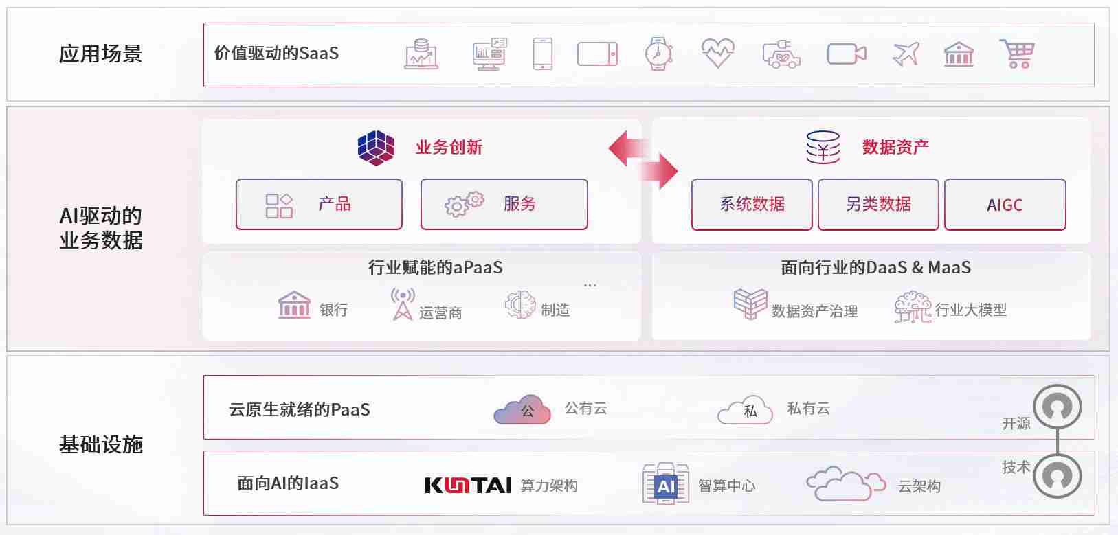 数字时代,,围绕企业数字化转型的关键要素,,神殿娱乐数码开创性的提出数云融合战略和技术体系框架,,,,着力在云原生、、、、数字原生、、、、AI原生和信创产业上架构产品和服务能力,,,为处在不同数字化转型阶段的快消零售、、、、汽车、、金融、、、、医疗、、、、政企、、教育、、运营商等行业客户提供泛在的敏捷IT能力和融合的数据驱动能力,,,,构建跨界融合创新的数字业务场景和新业务模式,,助力企业级客户建立面向未来的核心能力和竞争优势,,全面推动社会的数字化、、、智能化转型升级。。