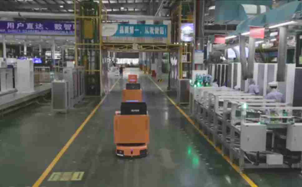 为车载冰箱物流配送打造的智能解决方案,,包含产中物流通过潜伏举升AMR搬运至线边,,,,产后成品物流智能仓储,,,流程包含产中物流智能齐套入库,,线边安灯叫料AMR智能配送至线边,,,成品入库、、、出库,,,通过无人堆高车机器人,,智能仓储管理替代人工作业管理,,,实现更高存储、、更高效率、、、更具柔性化的解决方案。。。。